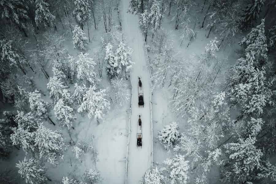 Spüre die Geschwindigkeit der Huskys im stillen, verschneiten Wald. Zwei Erwachsene teilen sich einen Schlitten und während der Safari kannst du den Fahrer wechseln. Für Kinder jeden Alters geeignet.