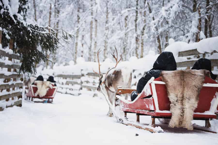 Triff die Rentiere in Rovaniemi auf einem Ausflug, der den Transport von der Stadt beinhaltet. Lerne von den örtlichen Rentierzüchtern und genieße eine kurze Schlittenfahrt.
