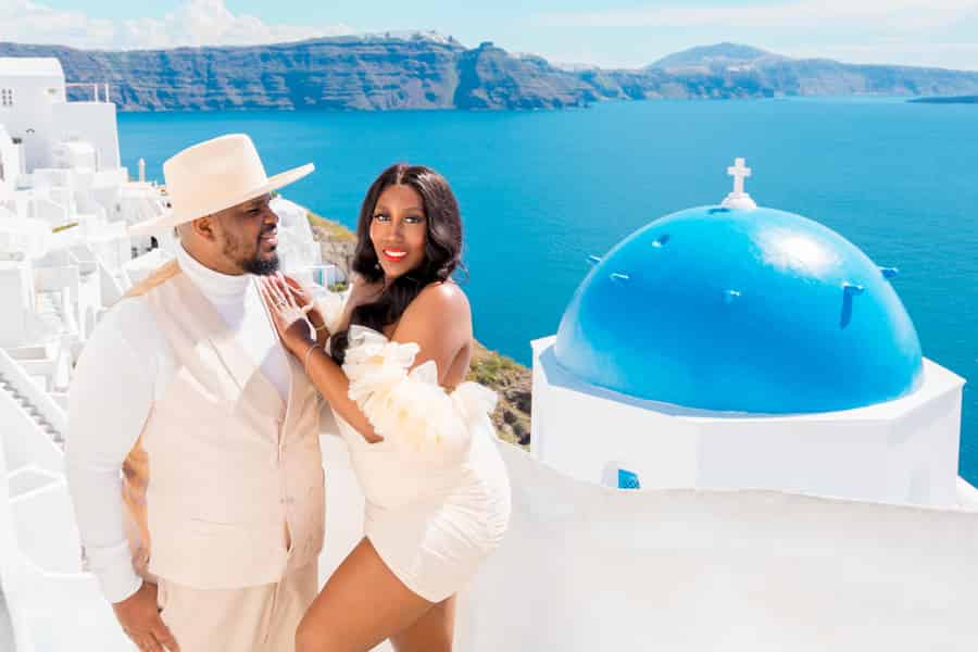 Haltet eure Erinnerungen an Santorini mit einem Fotoshooting im wunderschönen Dorf Oia fest. Genießt professionelle Anleitung vor der Kulisse der ikonischen weiß getünchten Gebäude und blau gekuppelten Kirchen.